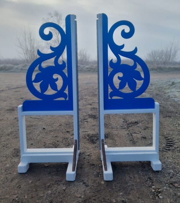 Fine let håndterbare vinger. Der medfølger intet tilbehør. Bomme og evt. planker / fyld kan selvfølgelig bestilles nye og males efter ønske så det passer godt sammen med vingerne.