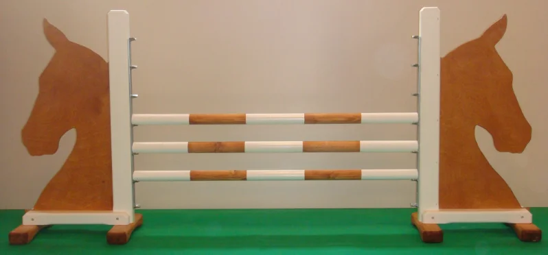 Kæpheste springene er bygget som et rigtigt ridebanespring og bommene kan ligges lavt som højt, så både store og små kan være med. Alle vores spring kan bygges med ekstra springhøjde, hvis dette ønskes. Skriv blot en bemærkning i din bestilling, så kontakter vi dig med nærmere info.