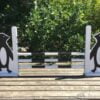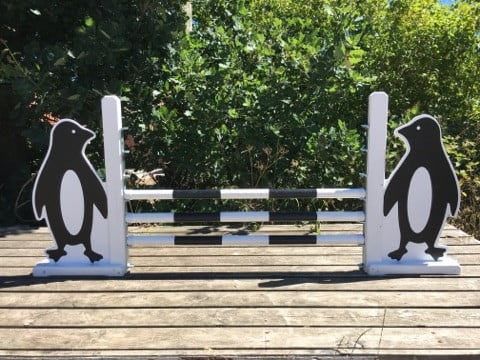 Kæpheste springene er bygget som et rigtigt ridebanespring og bommene kan ligges lavt som højt, så både store og små kan være med. Alle vores spring kan bygges med ekstra springhøjde, hvis dette ønskes. Skriv blot en bemærkning i din bestilling, så kontakter vi dig med nærmere info.