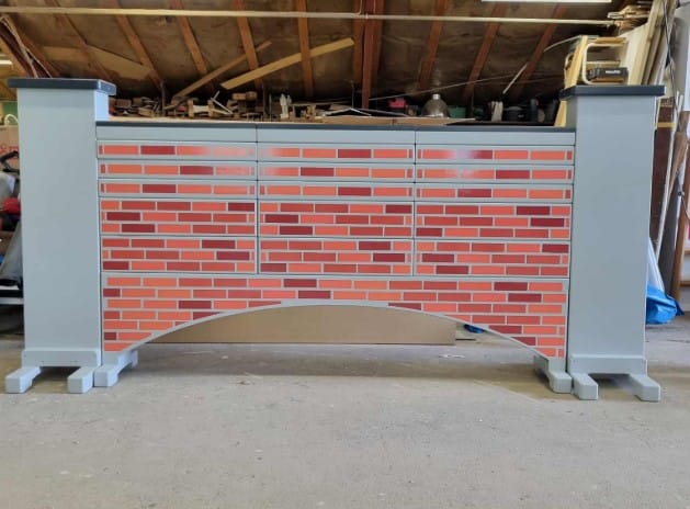 Produktionstiden på en mur er typisk 4 uger. Prisen er for en mur som denne med 3m. mellem tårnene og inkl. dekoration.