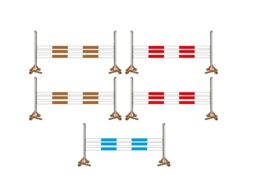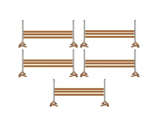 Denne springpakke indeholder 10 stk. enkeltsøtter samt 15 stk. 3m bomme. Bommene er ovntørrede letvægtsbomme og der medfølger 30 stk. FEI-godkendte bomholdere i plast.